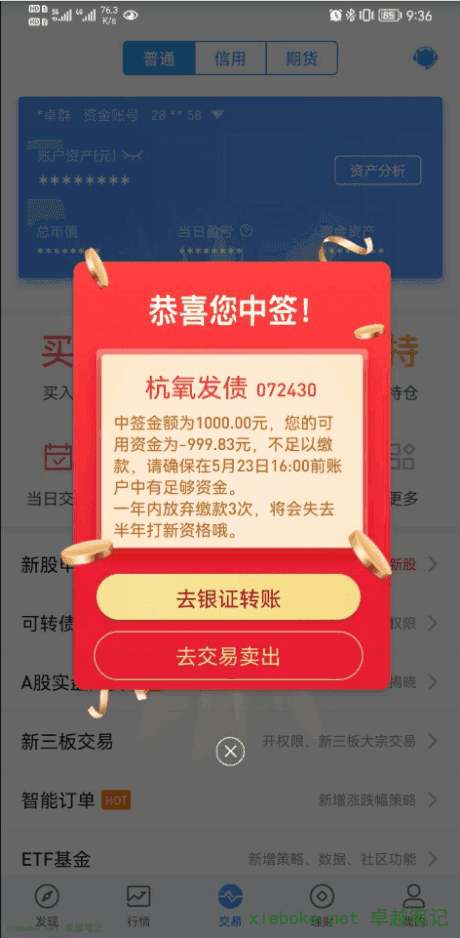 缴费当天 16:00 前足额缴费,要把银行卡的里钱转入到证券账户里(缴费后,有些 app 会显示 冻结资金是多少),系统会自动冻结对应中签的资金。