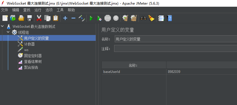 Add -> Config Element -> User Defined Variables,添加变量 baseUserId=8982039
