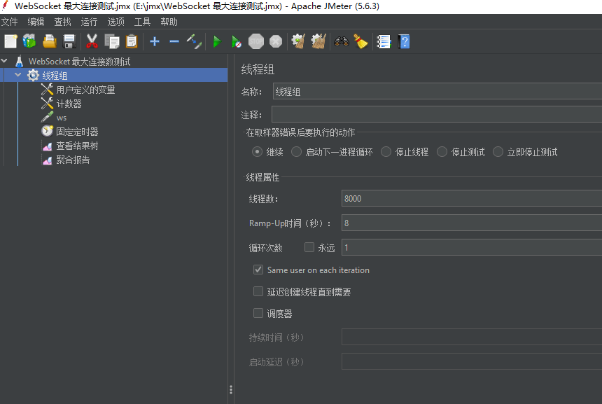 创建测试计划打开 JMeter,新建测试计划(Test Plan),命名为 “WebSocket 最大连接测试”。